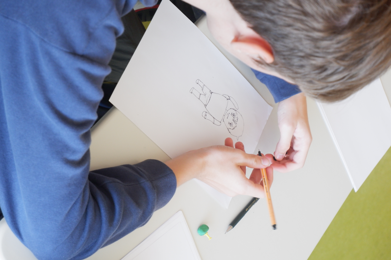 Unter Anleitung wurden Mangas Schritt für Schritt gezeichnet, es durfte die Erfahrung gemacht werden, dass Figuren blind oder eine Figur auf dem Kopf stehend abzuzeichnen dabei hilft, sich auf die Kraft der einzelnen Linie zu konzentrieren. Gemeinsam wurden ein Tischrollenspiel ausprobiert, ein Klassenausflug mittels des Spiels „Scotland Yard“ entworfen und sogar Handys in ihre Einzelteile zerlegt, geradezu seziert, um einen Einblick in all die kleinen Teilchen des Gerätes zu bekommen, mit dem Ziel, das Handy zu verstehen und kleinere Reparaturen selbst vornehmen zu können. Die fein säuberlich aufgelisteten und aufgeklebten Einzelteile sind im neuen Schuljahr in zwei Schaukästen zu bestaunen.