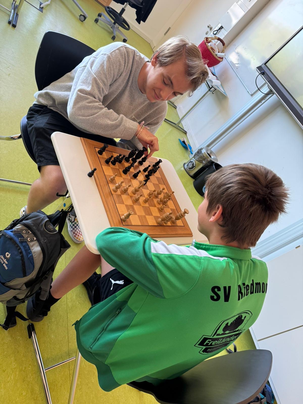 Im Kreativ-Zimmer wurde geplottet, kleine Taschen und Haargummis genäht, Schlüsselanhänger aus Filz hergestellt und bedruckt, in der Schulküche wurden Marmeladen gekocht und verschiedene Buttersorten gerührt, gewürztes Brot sowie salzige und süße Muffins gebacken, sodass die gesamte Schülerschar der 8. Jahrgangsstufe und alle Anbietenden von Workshops sich im Anschluss stärken konnten. Nebenan rauchten die Köpfe – ein ziemlich cooler junger Mann spielte simultan gegen einige Schülerinnen und Schüler Schach – wobei er gegen alle gewann – man zeigte sich schwer beeindruckt und nahm sich vor, mehr zu spielen, um besser zu werden.