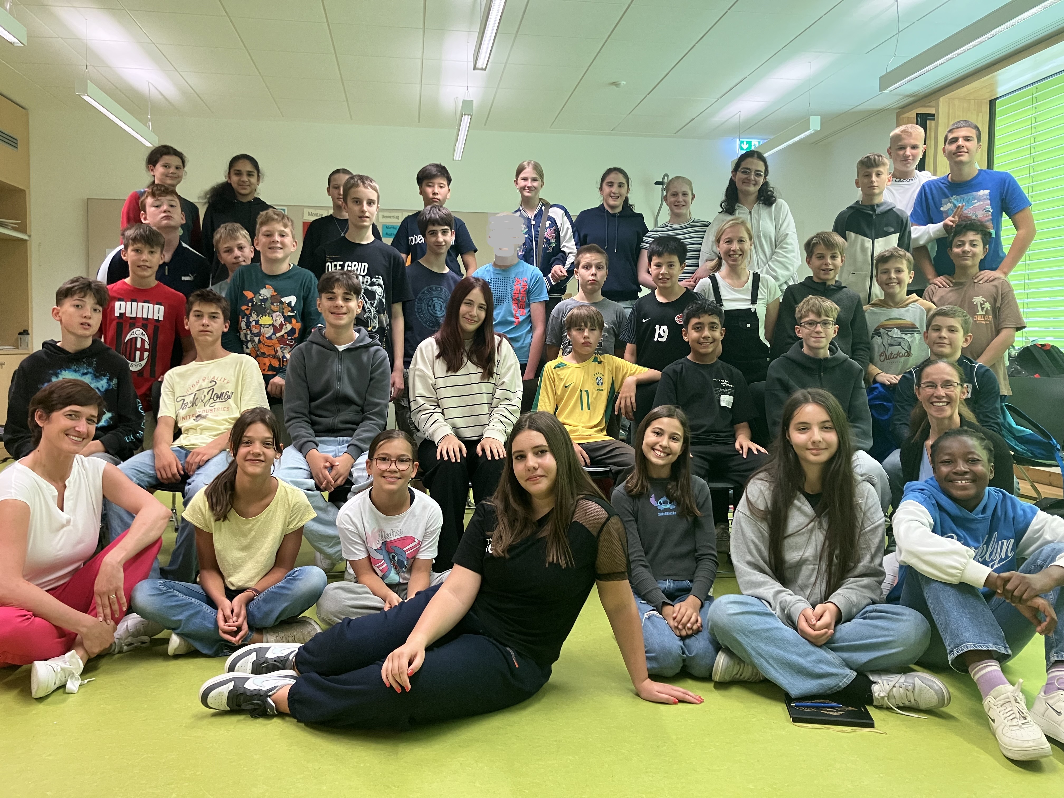 Die Klasse 6 E des vergangenen Schuljahres, begleitet von Frau Probst und Frau Engelhardt, nahm gemeinsam mit einer 6. Klasse der Samuel-Heinicke-Realschule unter der Leitung von Frau Christiane Heimerl am München Spezial Wettbewerb der MB-Dienststelle München teil. Unter dem Motto „Mit Storytelling und Poetry Slam etwas Zauber in den Unterricht bringen“ entstand im Fach Deutsch bereits im Schuljahr 24/25 ein außergewöhnliches Projekt, das die Kreativität der Jugendlichen in den Mittelpunkt stellte. Ganz ohne Leistungsdruck durften sie ihren Gedanken freien Lauf lassen und entdecken, wie befreiend und kraftvoll Schreiben sein kann.