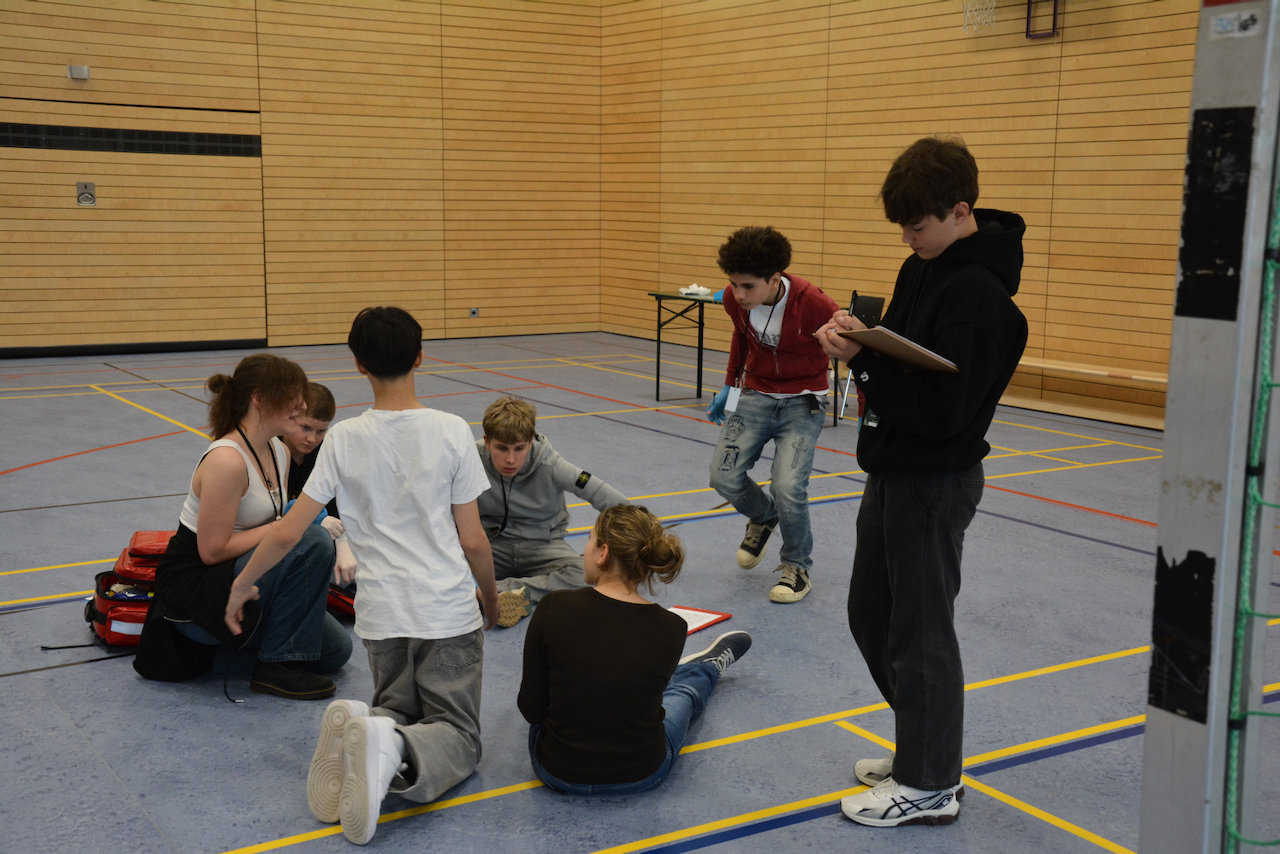 In der fachlichen Wettbewerbskategorie wurde es spannend: Neben theoretischem Wissen mussten die Schülerinnen und Schüler vor allem ihr praktisches Können zeigen. An realistisch inszenierten Fallbeispielen – vom verletzten Hausmeister bis hin zum Hitzschlag bei einem Sportfest – bewiesen die Teams ihr schnelles Handeln, ihr Fachwissen und ihre Nervenstärke. Natürlich durfte auch das Thema Reanimation nicht fehlen.