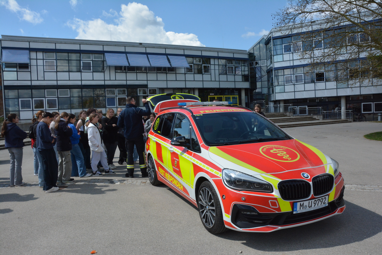 Doch nicht nur der Wettbewerb selbst sorgte für Begeisterung: Die Veranstaltung bot auch eine tolle Gelegenheit zum Austausch und zur Vernetzung. Ein besonderes Highlight war der Besuch der Freiwilligen Feuerwehr Unterschleißheim und des Bayerischen Roten Kreuzes. Mit spannenden Einblicken in ihre Arbeit – vom First-Responder-Fahrzeug bis hin zum Mehrzweckfahrzeug aus der Fahrzeugflotte des BRK – begeisterten sie die Teilnehmenden und vermittelten eindrucksvoll die Bedeutung des Ehrenamts.
